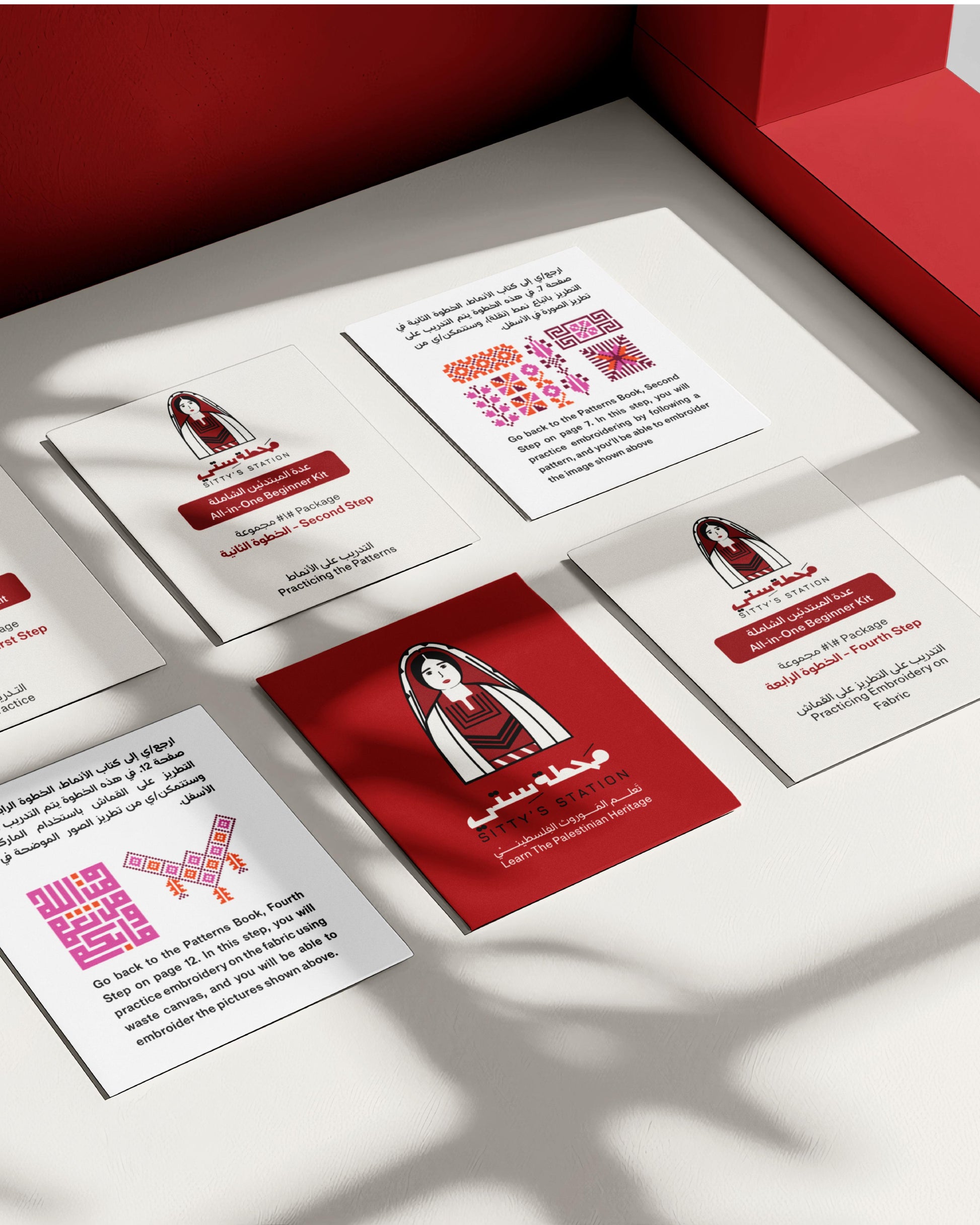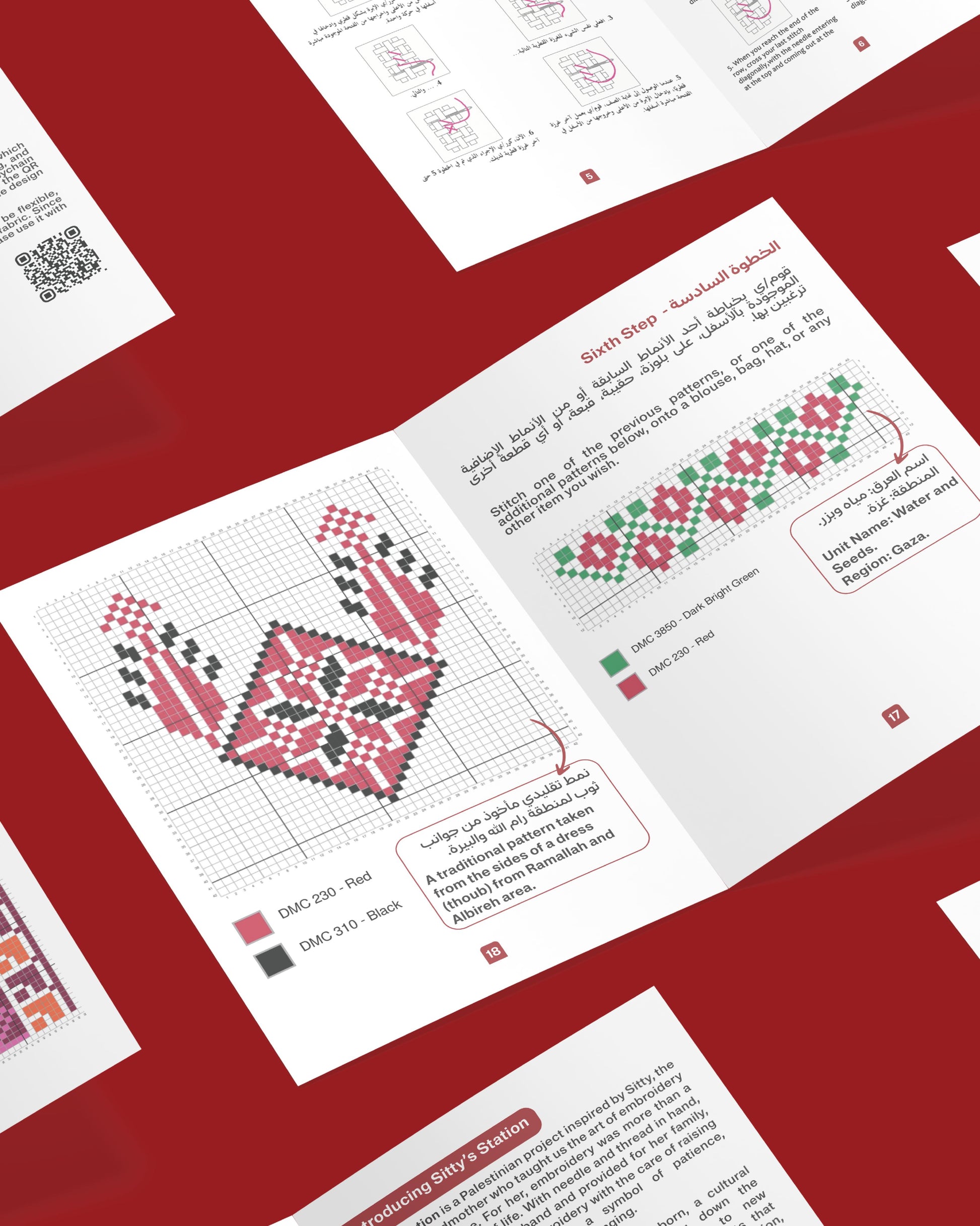 - A booklet containing embroidery methods, patterns, and QR codes for instructional videos.